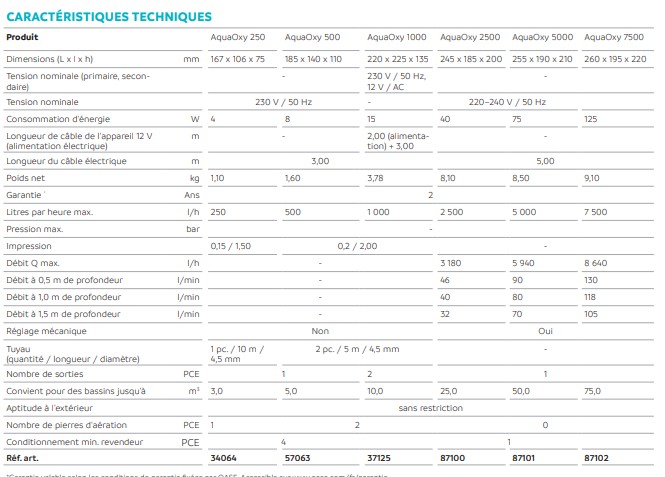 La pompe d'aération AquaOxy 2500 fournit un débit volumétrique de 2.500 l/h maximum avec une faible consommation d'électricité.