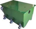 Un filtre à chambre en mode gravitaire s'installe avec une pompe externe (Emergé), la pompe doit être installée après le filtre et en charge (sous le niveau de l'eau du bassin), l'entrée du filtre se positionne au niveau de l'eau en entrée généralement PVC, il doit toujours être alimenté en eau pour que la pompe soit toujours en eau.