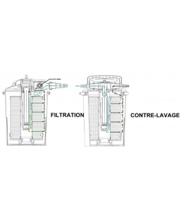 Le filtre sous pression est doté d'un système de contre-lavage ingénieux, ou la mousse grossière est nettoyée à l'extérieur en commandant une poignée. Cela permet de chasser les saletés hors de la mousse pour un entretien aisé.