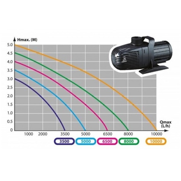 Débit : 5000 litres par heure, idéal pour alimenter de petites cascades, fontaines ou systèmes de filtration.