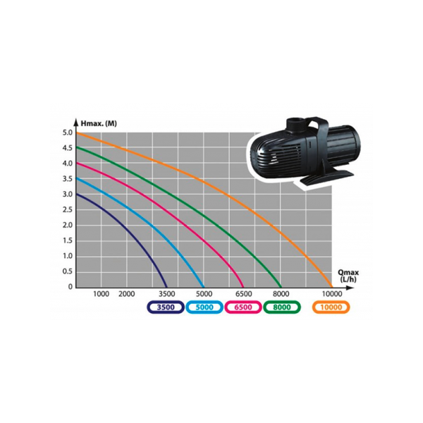 Débit puissant : Avec un débit maximal de 8000 litres par heure, la NCM 8000 est capable d'alimenter des filtres, des cascades et des fontaines de taille moyenne.