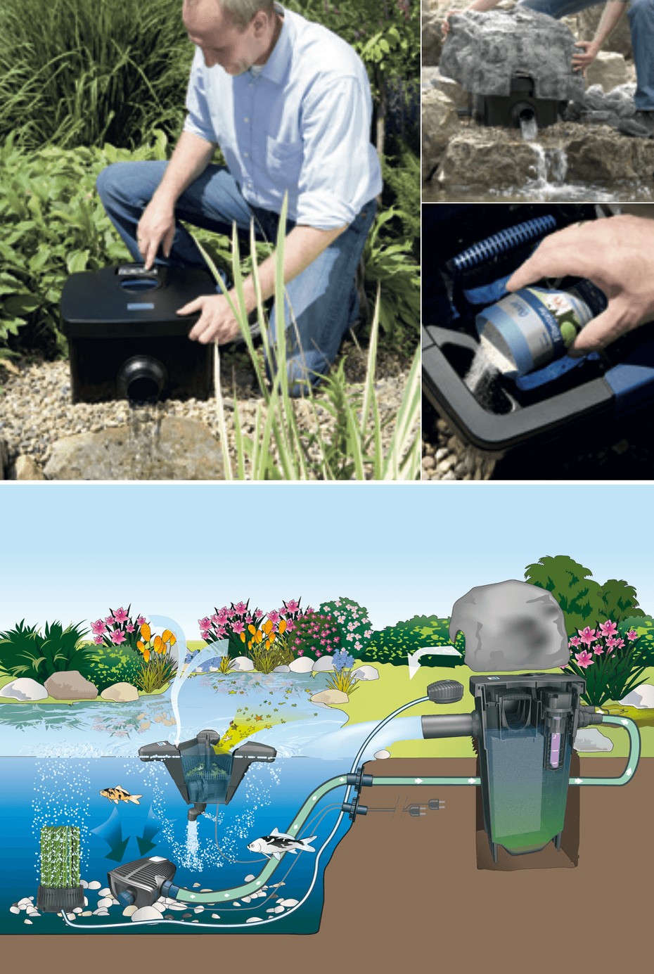 FiltoMatic CWS Set 14000. Ensemble, la pompe de filtration AquaMax Eco Premium 7000 et le filtre de bassin FiltoMatic CWS 14000 débarrassent votre bassin jusqu'à 14 m³ ou votre bassin à poissons de 7 m³ des substances nutritives et des matières troubles.