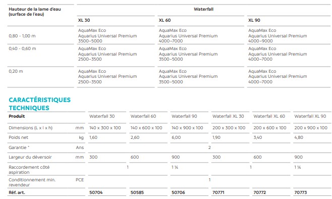 Cascade noble et gracieuse de 30 cm de large. Il est désormais très facile de créer des chutes d'eau personnalisées, car la finition robuste et de qualité en acier inoxydable permet aussi bien l'encastrement dans un mur que le vissage sur un mur. Maintenant avec une lèvre de sortie rallongée de 6 cm pour une installation encore plus facile. La livraison comprend un embout de tuyau à bouchon et un bouchon extra-plat. La pompe adaptée garantit une cascade claire et régulière : pour une hauteur de cascade de 0,8 m - 1,0 m = AquaMax Eco 3500 - 4000 / 0,4 m - 0,6 m = AquaMax Eco 2500 / 0,2 m = AquaMax Eco 2500. Pour des accents lumineux élégants le soir, vous pouvez également installerl'éclairage LED Waterfall Illumination adapté. Faites confiance à la qualité OASE, car vous bénéficiez d'une garantie de 2 ans.