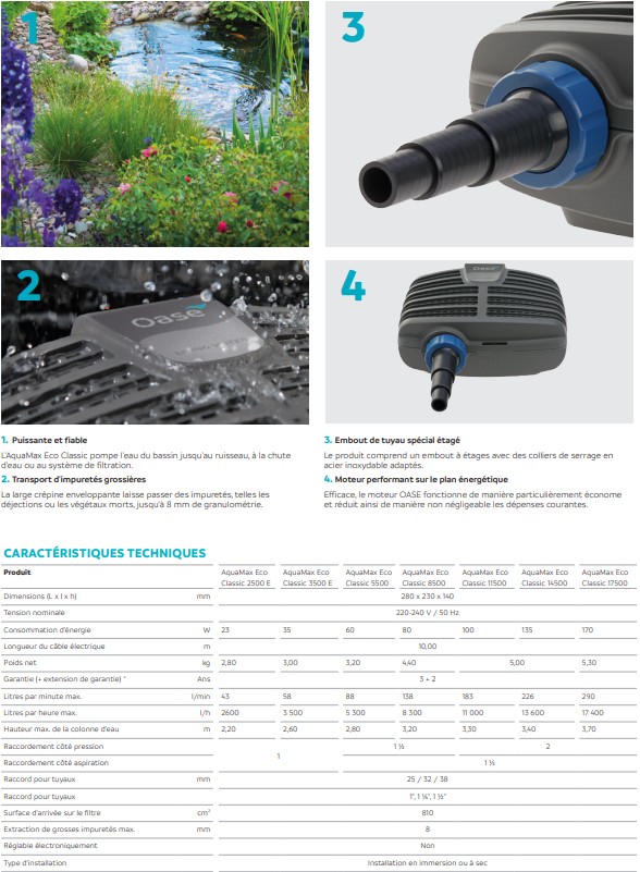Pompe de bassin de jardin OASE, grâce à la grande performance énergétique de son moteur, l'AquaMax Eco Classic économise toujours de l'électricité et de l'argent