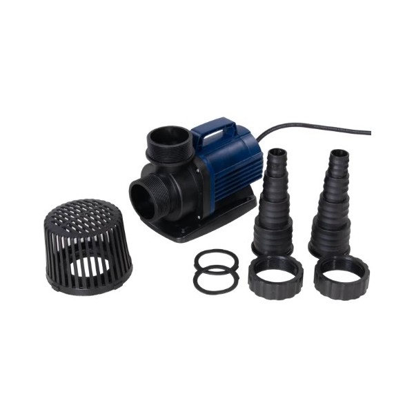 Avec une consommation électrique de 95 Watts, le DM-E 13 000 a un débit maximum de 13 m 3 par heure et une hauteur de chute de 5 mètres. Cela rend la pompe très adaptée aux filtres, cascades, ruisseaux, etc. La taille de connexion de cette pompe de bassin économe en énergie est un filetage mâle de 2", et la pompe est livrée avec un panier qui s'y installe.